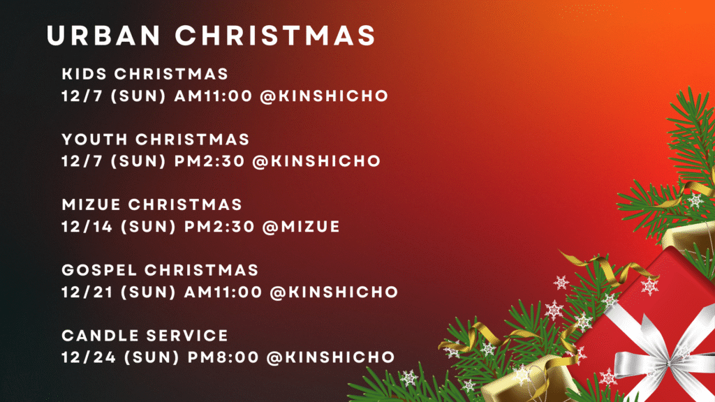 東京アーバンチャーチでは合計5つのクリスマスイベントを今年は開催します!
